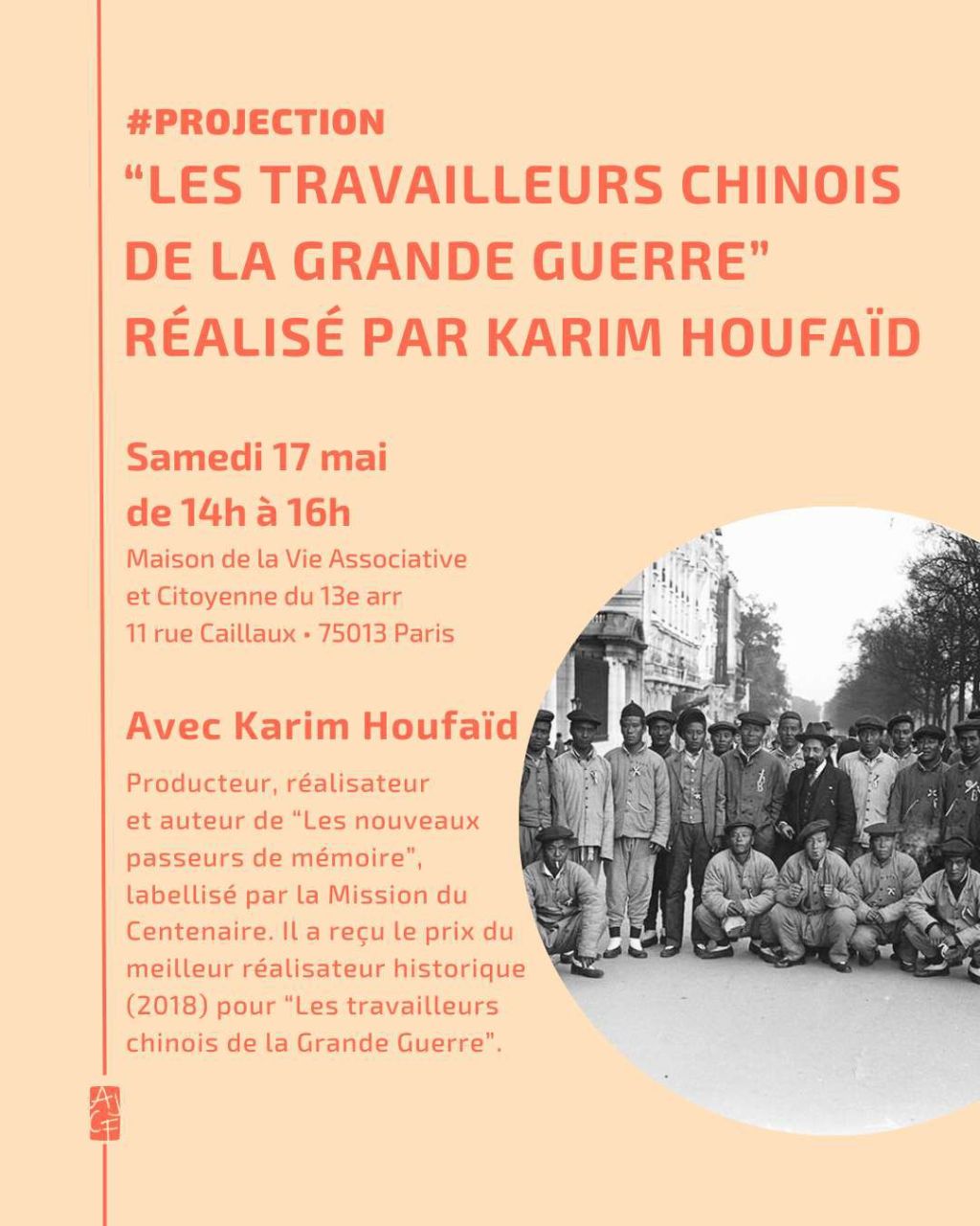 Projection : “Les travailleurs chinois de la Grande Guerre” réalisé par Karim Houfaid